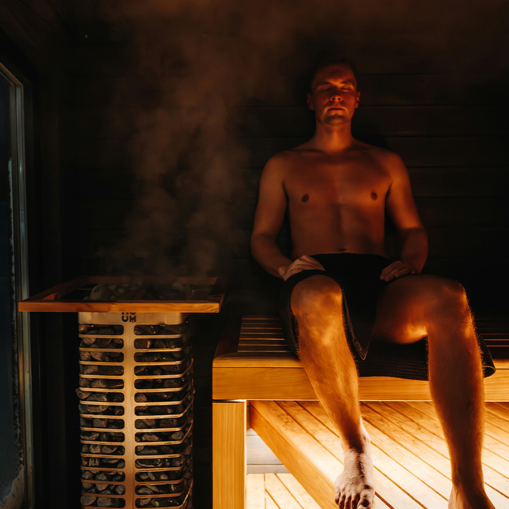 Sauna sessions support detoxification, cardiovascular health, and deep relaxation. Heat exposure promotes endorphin release and recovery support.